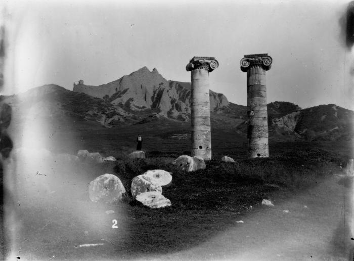 View before excavation showing standing columns. (Howard Crosby Butler Archive, Department of Art and Archaeology, Princeton University)
