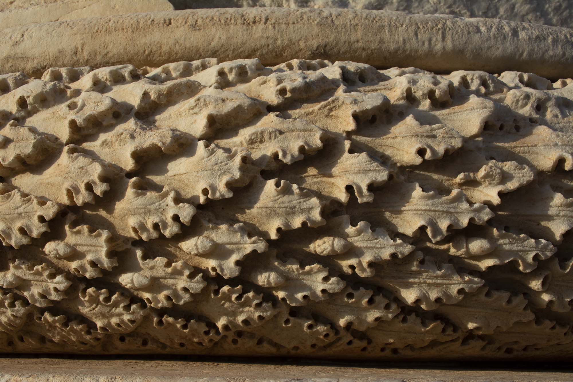 Base of unfinished Roman column 6, with oak leaves and creatures. (©Archaeological Exploration of Sardis/President and Fellows of Harvard College)
