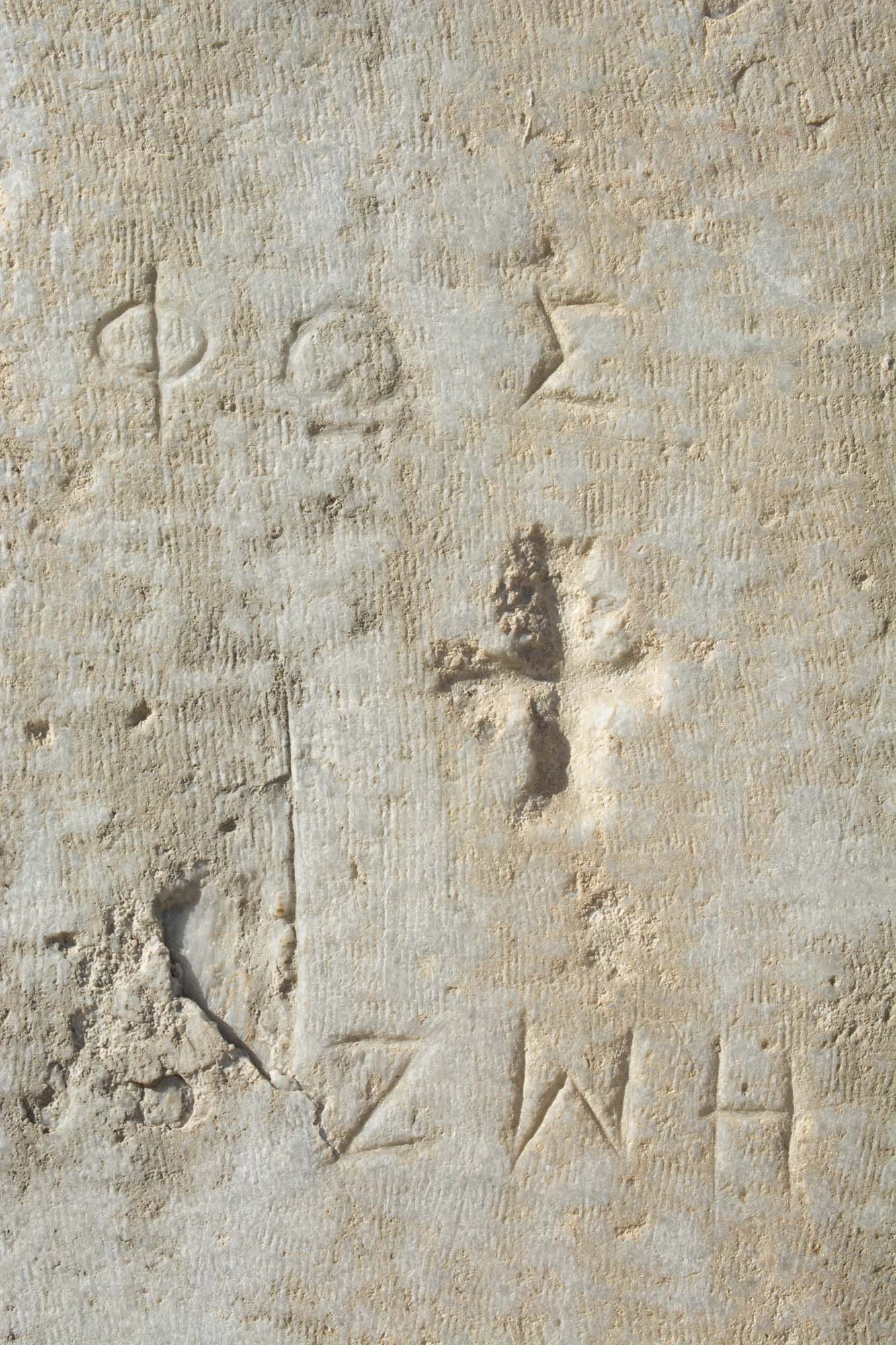 In the 4th-5th centuries AD, terms with Christian significance, “light” (ΦΩΣ) and “life” (ΖΩΗ), were carved on the south jamb of the door (fig. 24). Like crosses incised on both door jambs and on the south wall of the porch, they were “doubtless intended to banish the demons of paganism” (Buckler and Robinson).